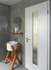 [趙崇聯(lián)] 我們這個(gè)新產(chǎn)品,主要是在顏色上花色上做了一個(gè)更大的突破,可以說(shuō)我們吸取了歐洲國(guó)家德國(guó)意大利等一些國(guó)家最新的流行花色,把這些新的產(chǎn)品應(yīng)用到了我們的產(chǎn)品上,大家可以看到周邊這些色彩、細(xì)節(jié)程度都是非常好的一款產(chǎn)品,這是我們這個(gè)花色上。第二個(gè)方面,從這個(gè)產(chǎn)品的結(jié)構(gòu)上做了很大的調(diào)整。我們推出的新款,它的合頁(yè)間,我們搞的是(縮微)合頁(yè),可以自動(dòng)調(diào)整的,可以說(shuō)科技含量會(huì)更高一些,這是合頁(yè)上、五金上。那么第三個(gè)方面,我們從門的厚度上增加了。增加門的厚度主要有兩個(gè)方面的優(yōu)勢(shì),一個(gè)方面,就是門可以起到隔音作用,起到封閉作用,這比以前會(huì)更好一些了,更優(yōu)越一些了。那么另一個(gè)方面,門的厚度增加,大家手在抓門碰門的時(shí)候,骨感會(huì)更好一些,就像我們?cè)谧,摸到一個(gè)很厚重的東西走和一個(gè)很輕薄的東西,手的感覺(jué)是不一樣的,舒服程度也不一樣。所以,基本我們?cè)谛缕飞,我想也是在這三個(gè)方面。