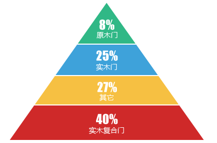 實(shí)木復(fù)合門以高性價(jià)比的優(yōu)勢(shì)占比40%,最受消費(fèi)者歡迎。一些小型的木門企業(yè)發(fā)展農(nóng)村市場(chǎng),生產(chǎn)符合其消費(fèi)需求的產(chǎn)品類型,拉高了其他材質(zhì)的比例。而隨著生活水平的提高,實(shí)木門占比也有所增加。