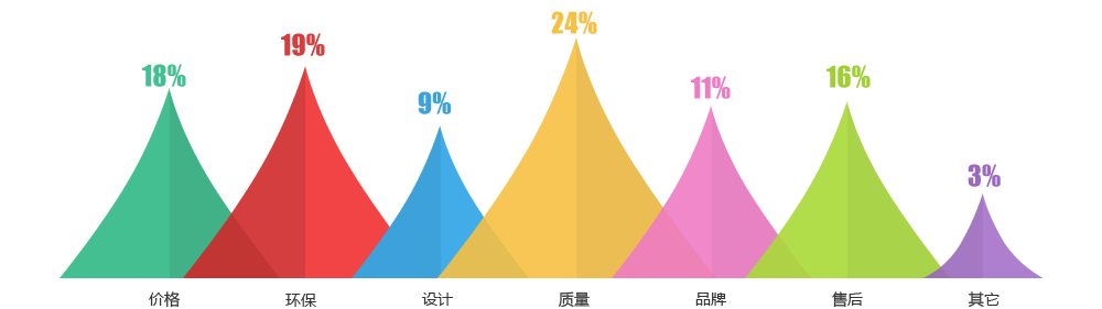由于木門行業(yè)的品牌意識(shí)不強(qiáng),消費(fèi)者在選購(gòu)木門時(shí)首先考慮的是質(zhì)量問題,占比24%,而隨著消費(fèi)者環(huán)保意識(shí)的增強(qiáng),木門的環(huán)保性也尤為關(guān)注。